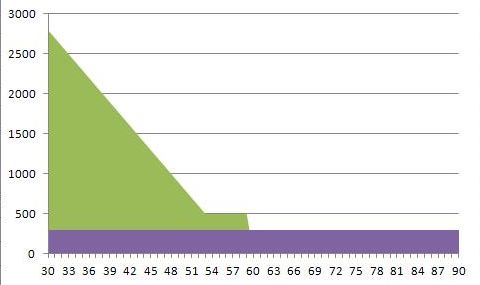 60歳までに亡くなると赤青の部分が支払われるので大きなお金が入ります。